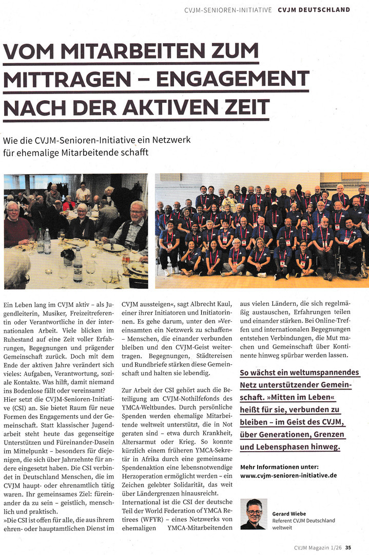 Arbeitsgemeinschaft der CVJM Deutschlands hat er seine Gaben eingebracht. Immer war sein Herz auch für die Geschwister im weltweiten CVJM – besonders in Peru – offen. Im Jahr 2022 hat er die Aufgaben